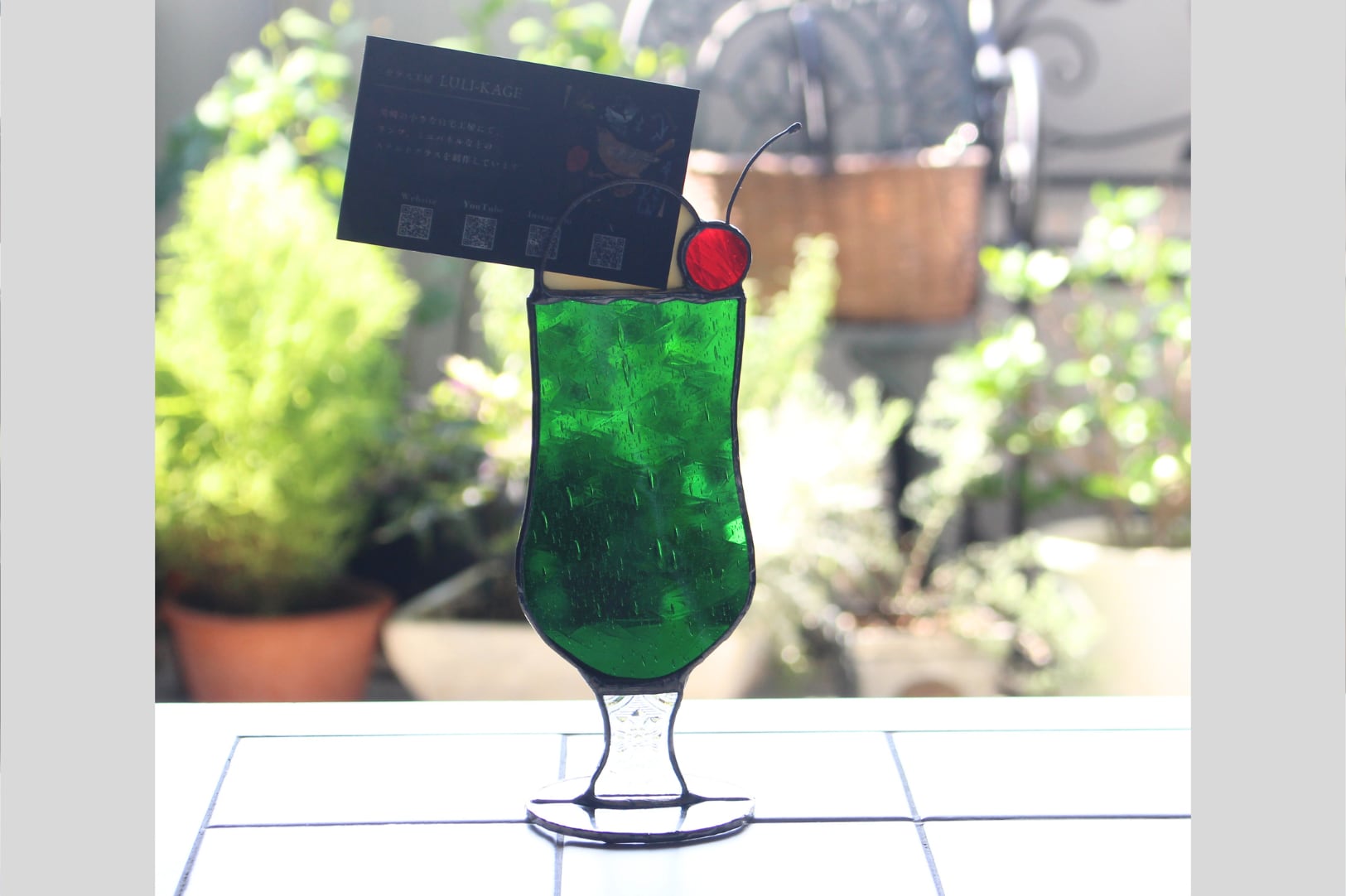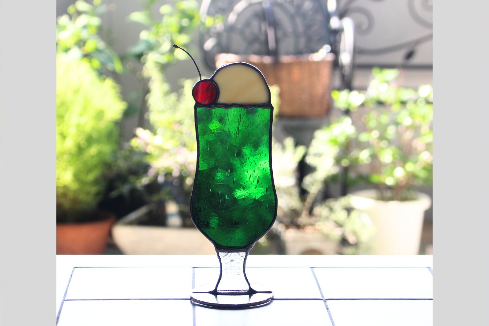 そんな音が聞こえそうなソーダそっくりのガラスで作った、ステンドグラスのクリームソーダです。