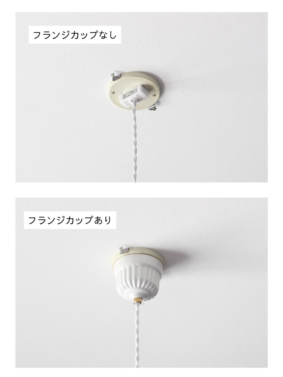 フランジカップとは、引掛シーリングボディ※を覆って、ライトとの接続部分を隠してくれる装飾部分を指します。