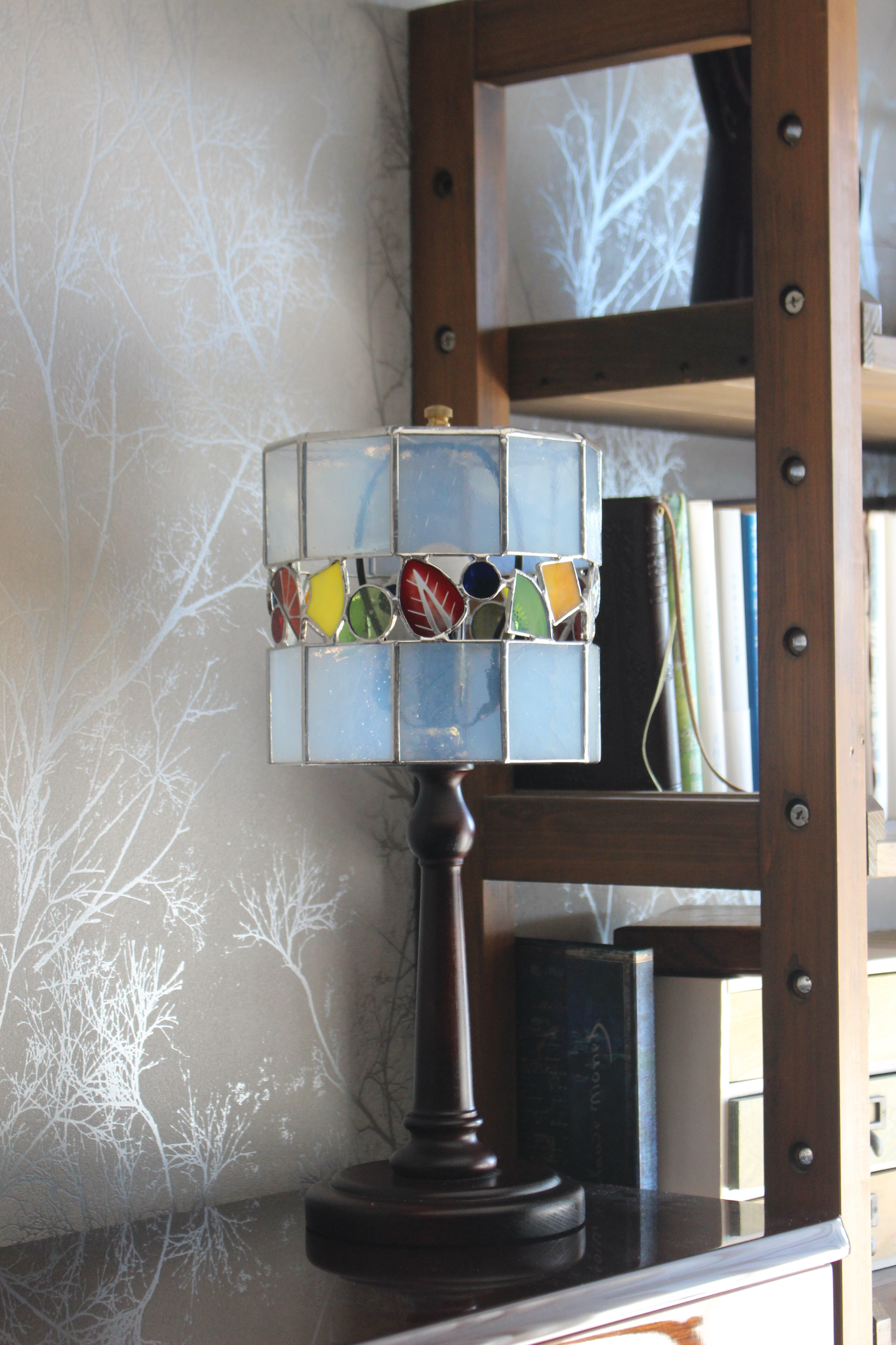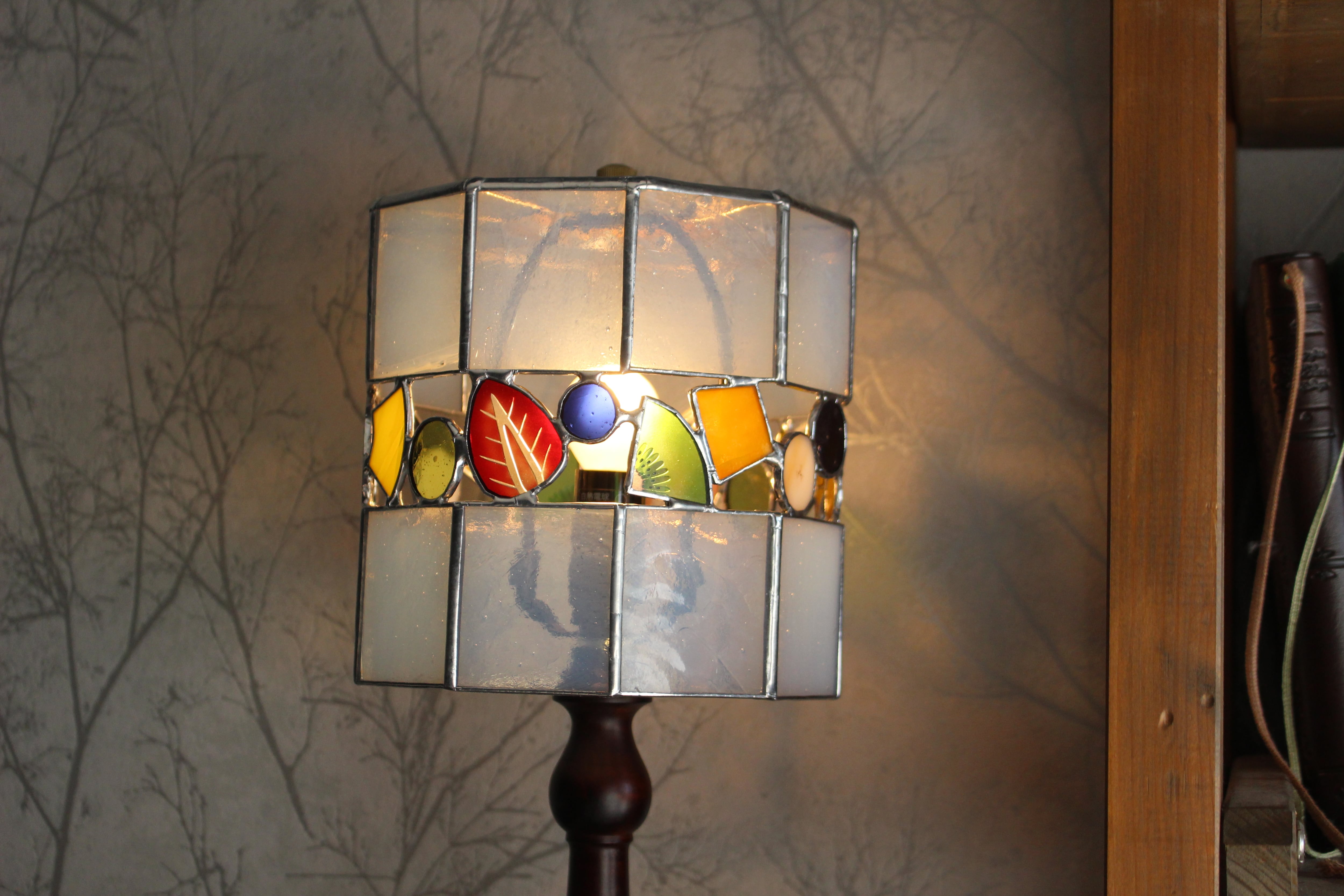 木製のランプベースは国内メーカーさんに作って頂いているのですが、上品な艶のある質感が本当に素晴らしく、ガラスのシェードを引き立ててくれます。