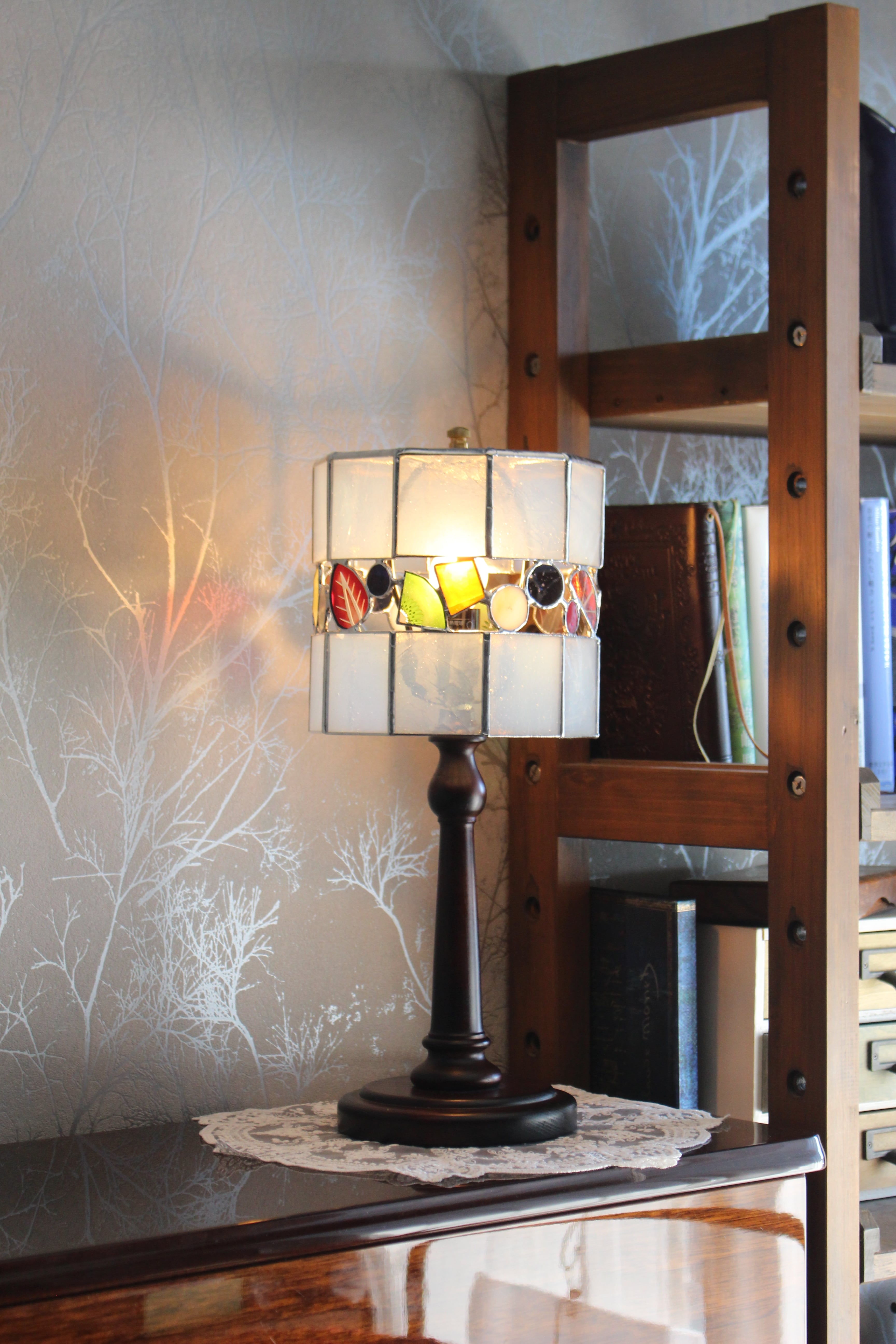 11種のフルーツが入った、ホールケーキをイメージした卓上ランプです。