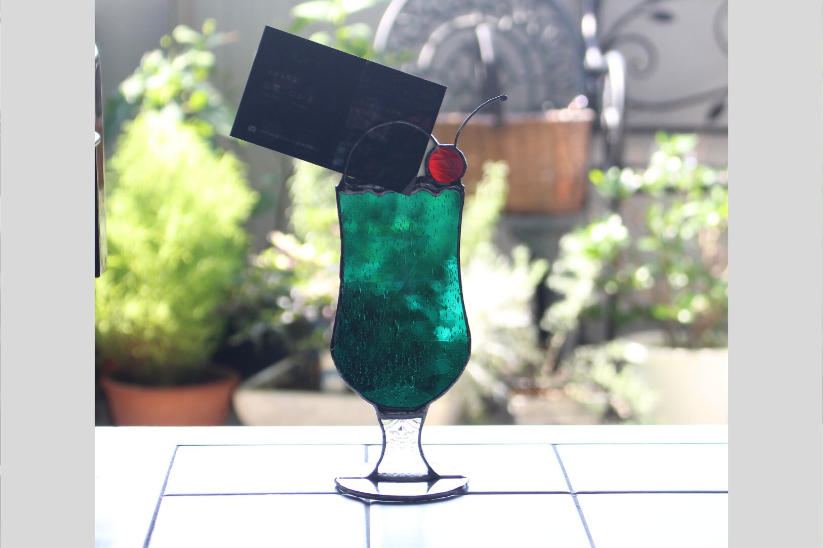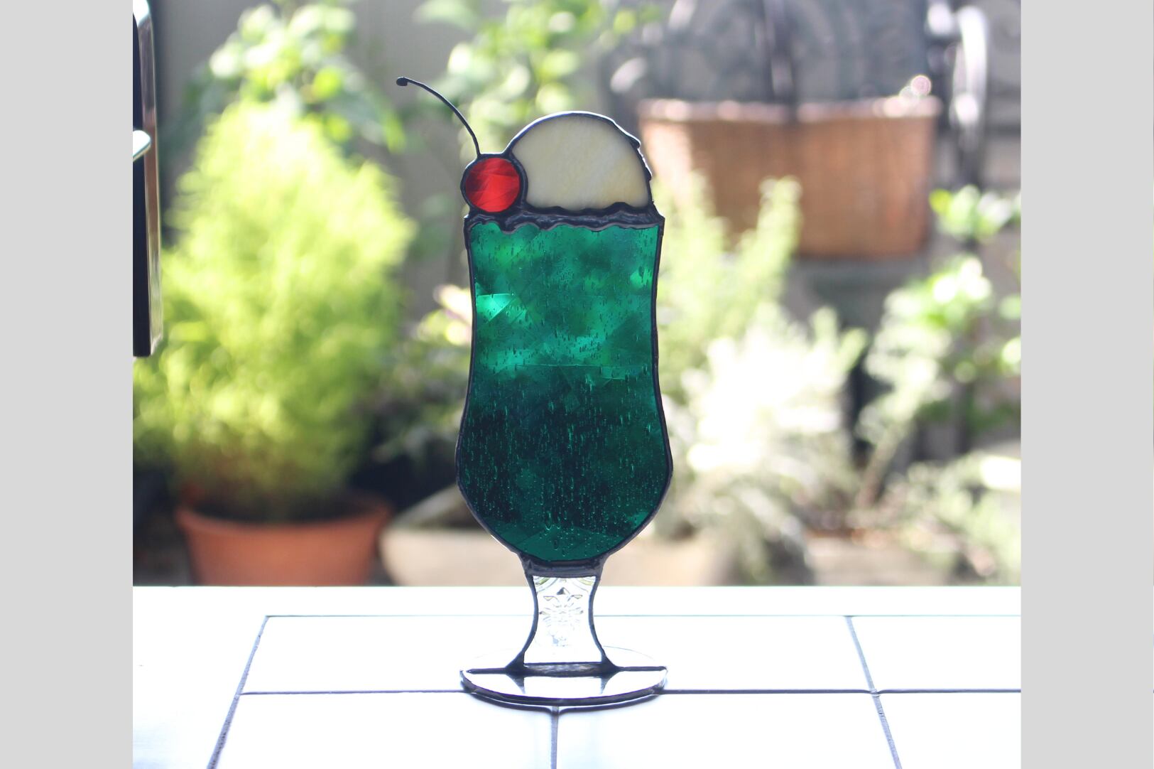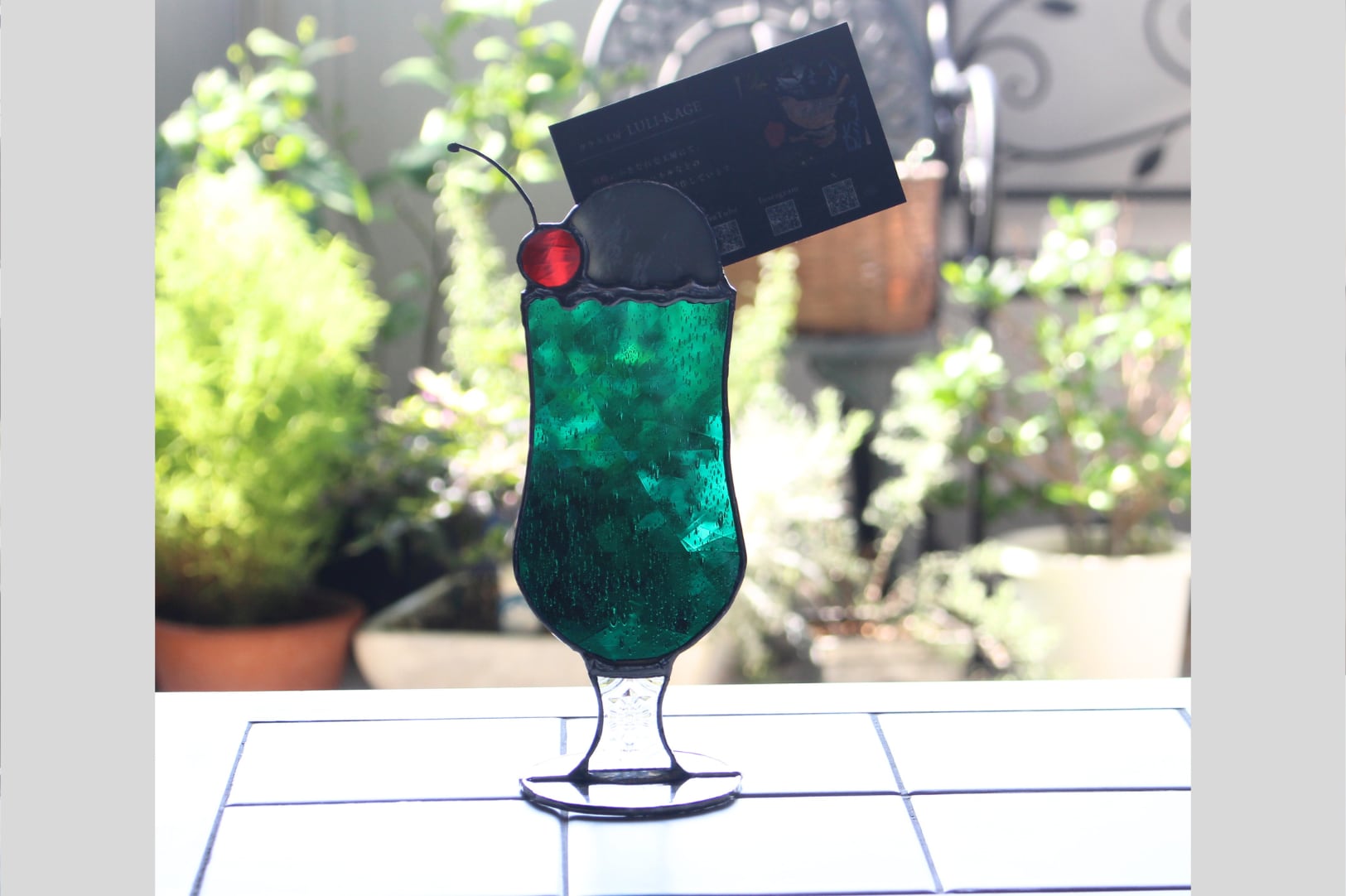 そんな音が聞こえそうなソーダそっくりのガラスで作った、ステンドグラスのクリームソーダです。