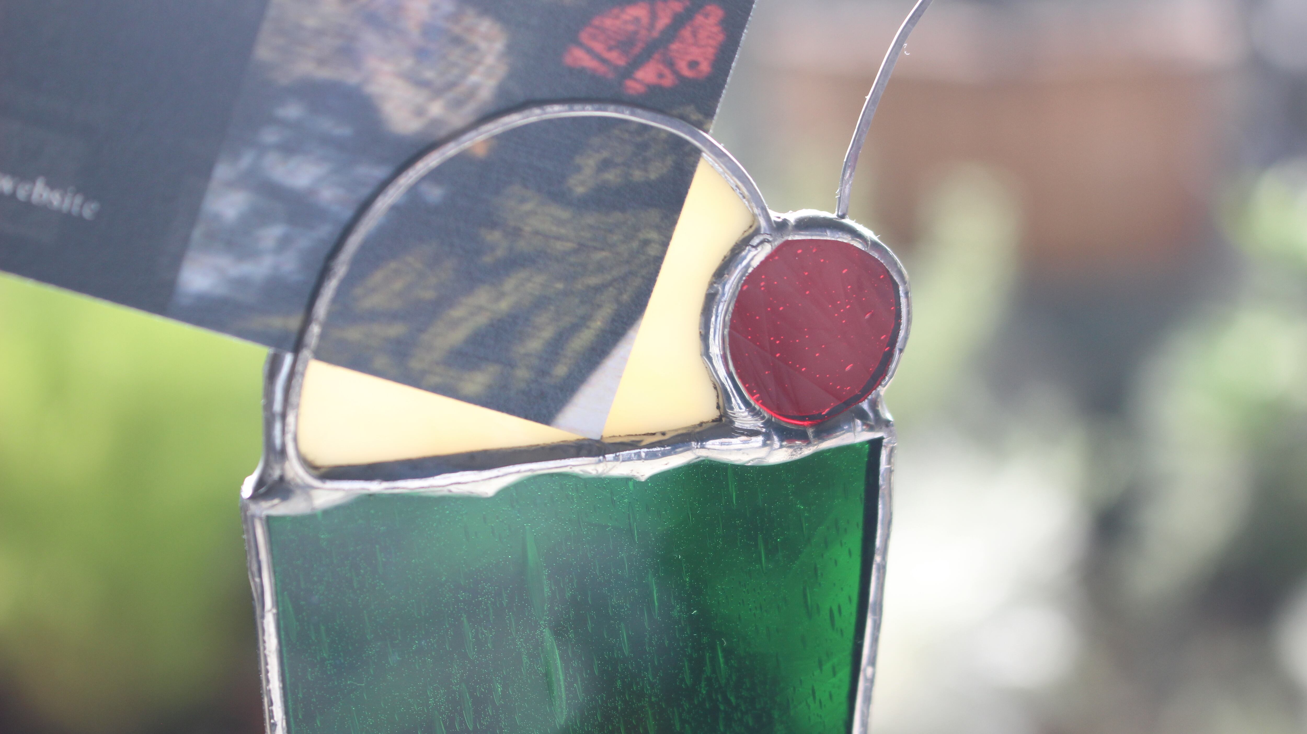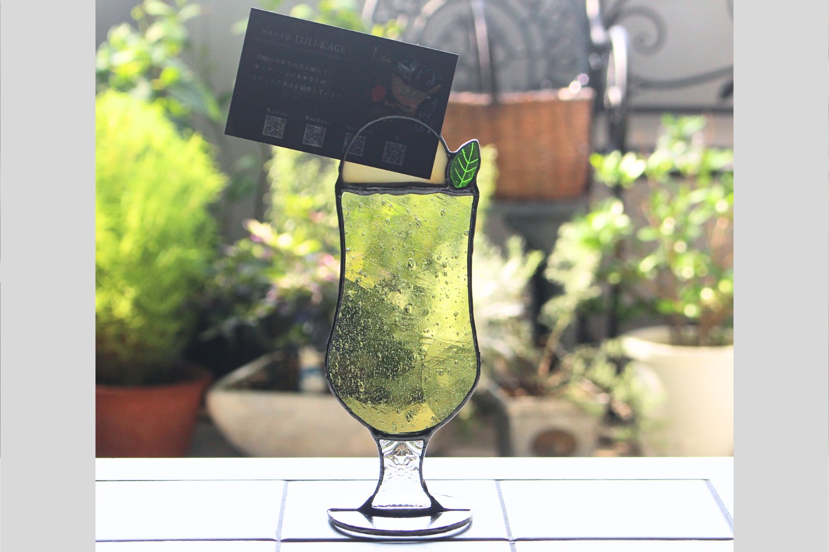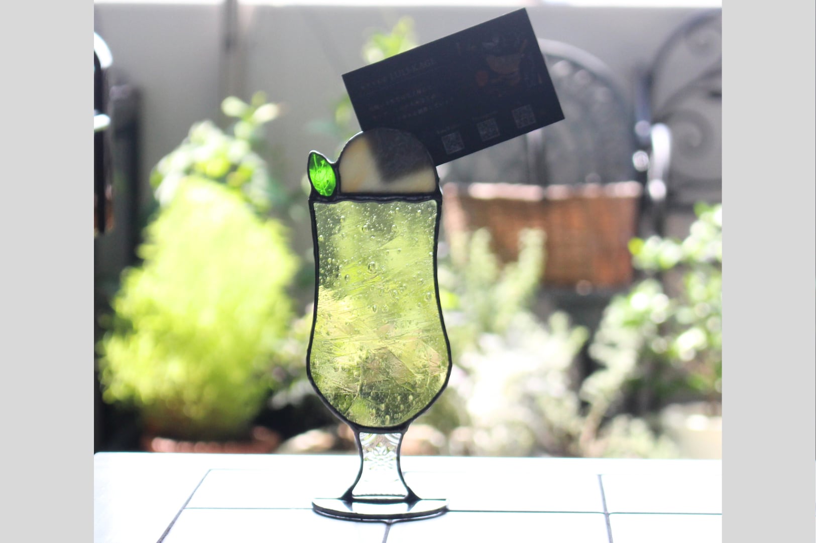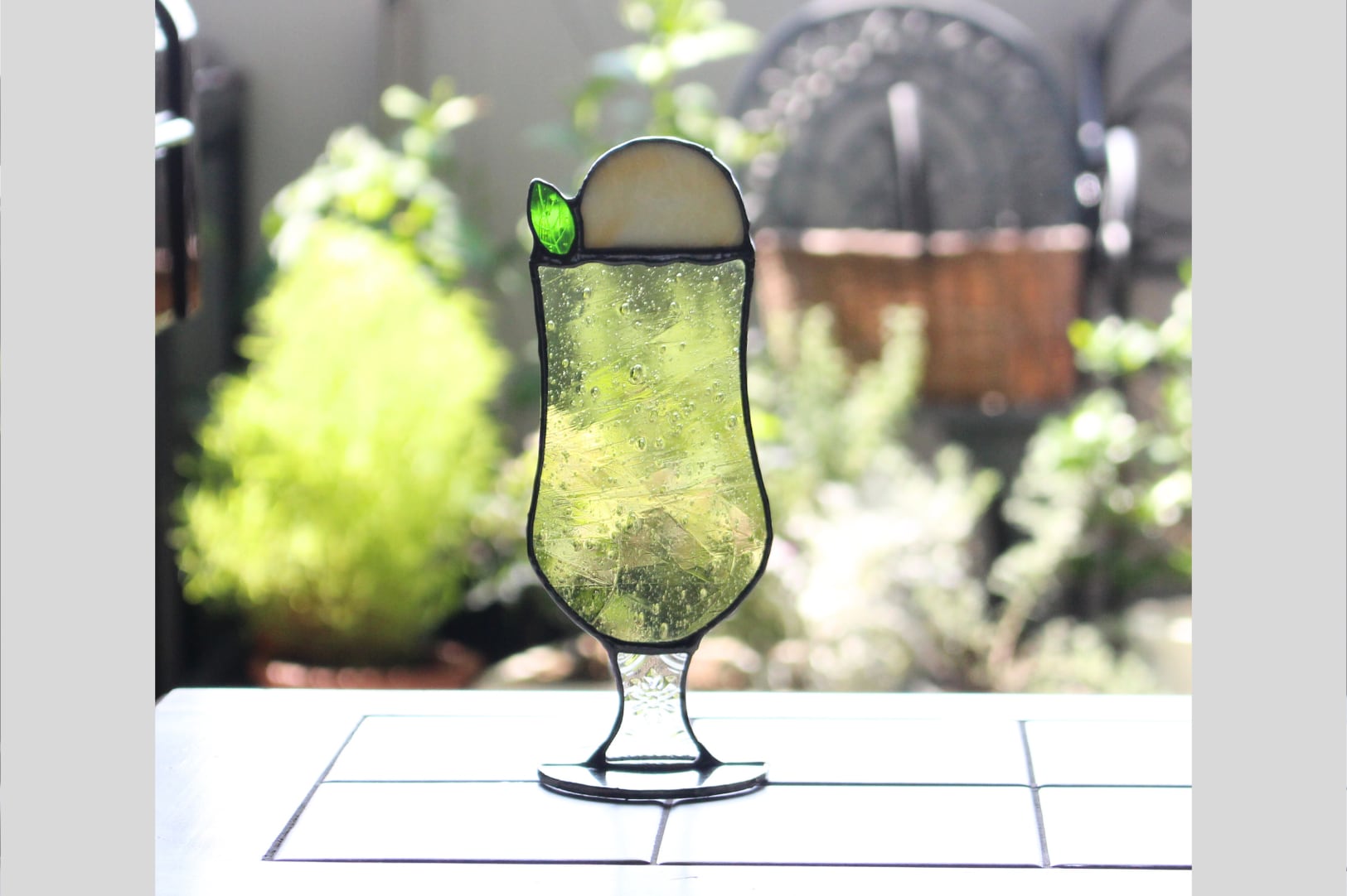 そんな音が聞こえそうなソーダそっくりのガラスで作った、ステンドグラスのクリームソーダです。